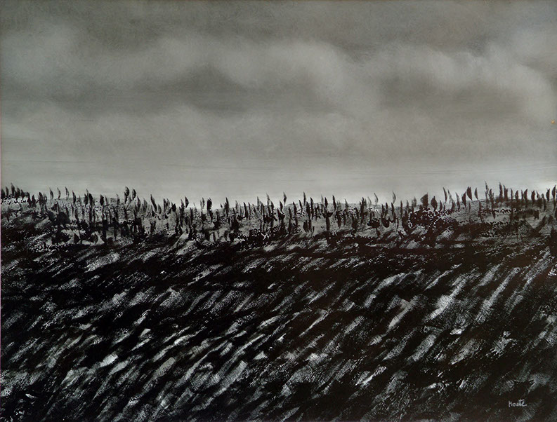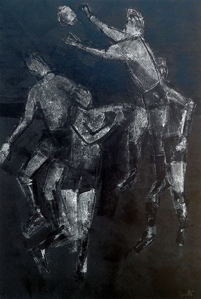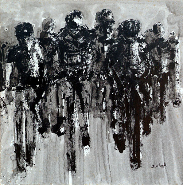 La Course (huile & lavis sur papier 34 x 34 cm)