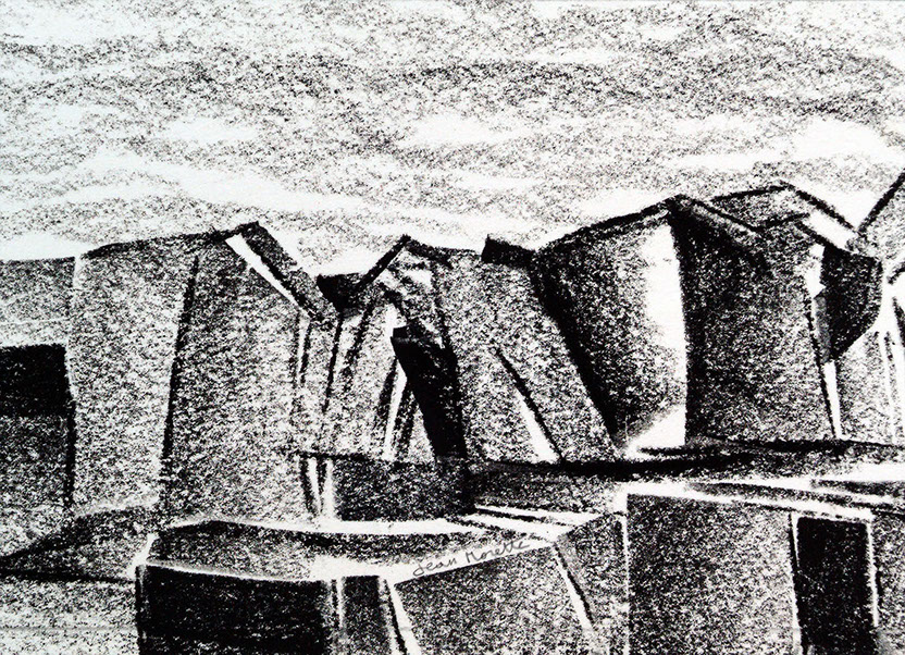 Le Centre de la Ville (encre sur bristol 44 x 28 cm)