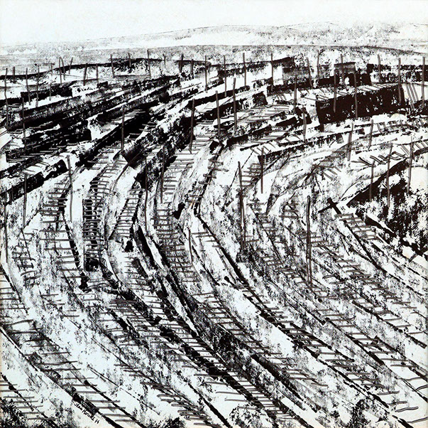 La Gare de Triage (huile sur bristil 34 x 34 cm)