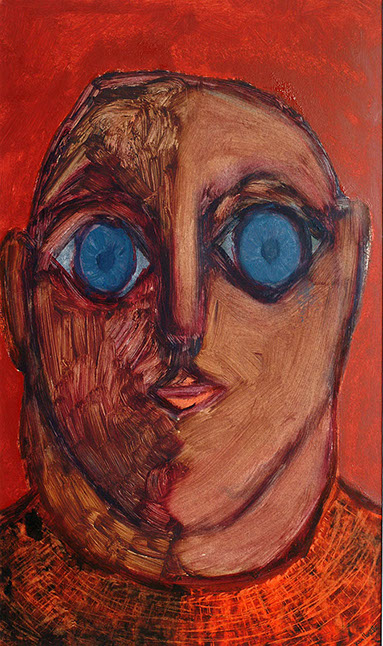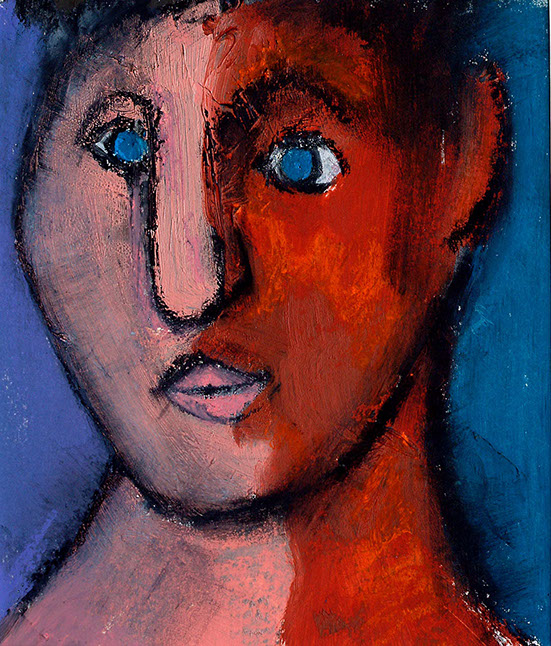 Visage aux yeux bleus (huile sur papier 52 x 41 cm)