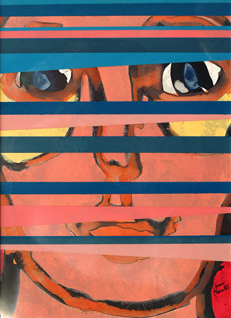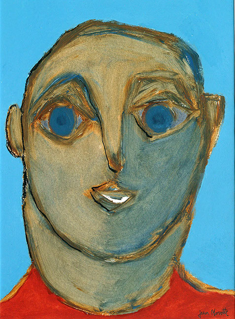 Visage au pull rouge (huile sur papier 34 x 32 cm)