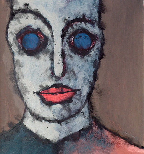 Visage aux yeux bleus (huile sur papier 52 x 41 cm)