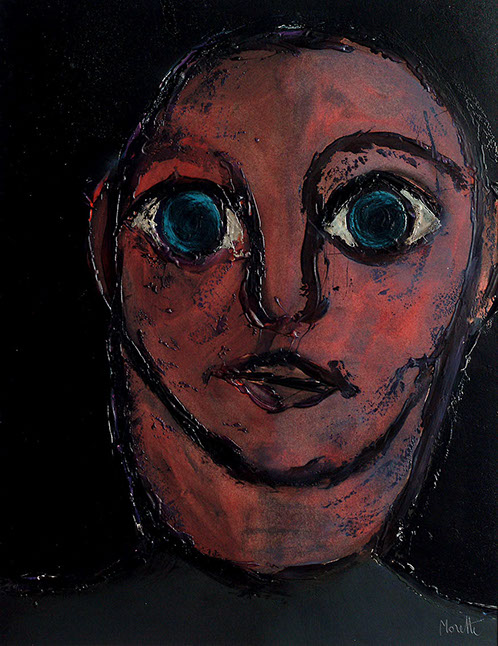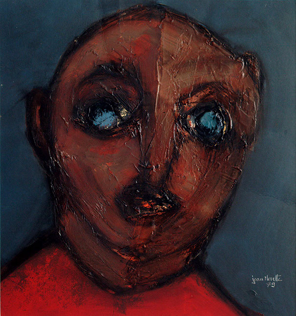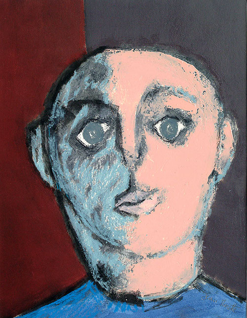 Visage au pull rouge (huile sur papier 34 x 32 cm)
